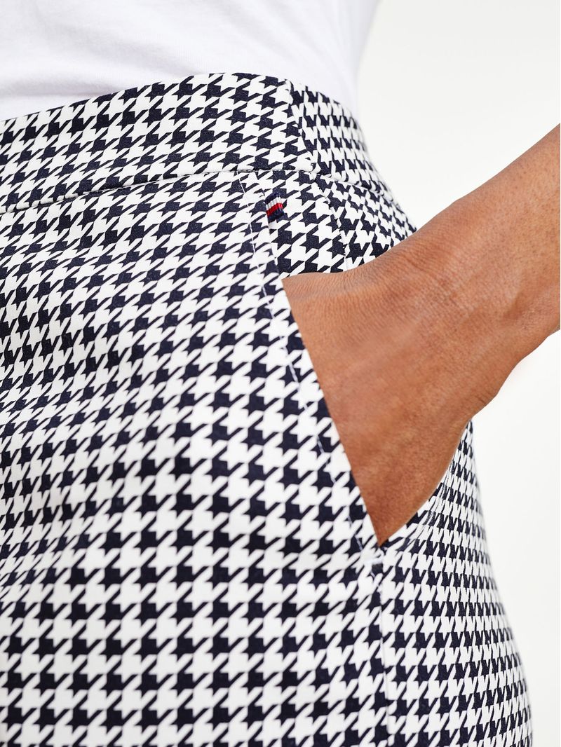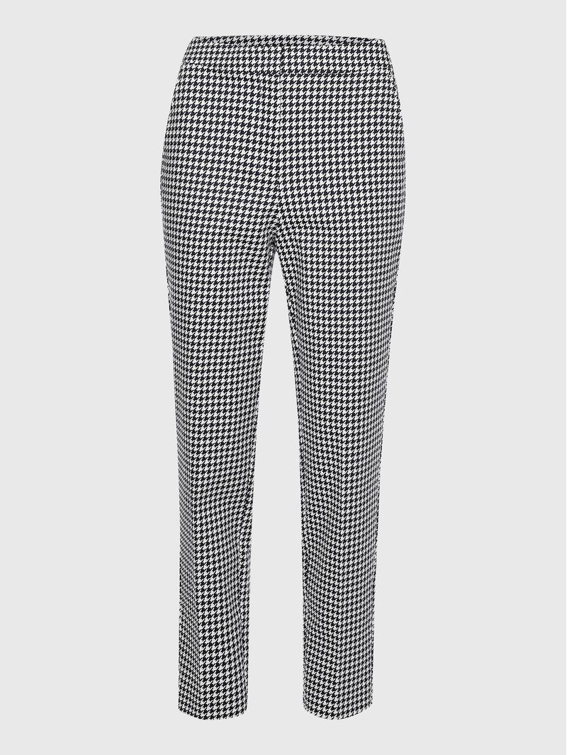 Este cómodo pantalón de algodón elástico presenta un diseño de pata de gallo y luce un elegante corte slim.